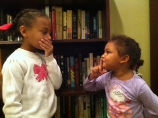 It is the competitive nature of my two little girls that keeps them quiet for long periods of times. The first one who makes a sound is declared “the loser.” And no child wants to be the loser. But the great thing here is that when one child loses, she keeps shouting “rematch!” which extends the game. Believe it or not my 3-year-old is always the champion. Thank you, Lord.