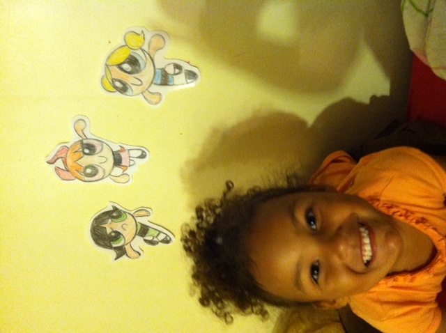 I had to get this under control. Quick! Then it dawned on me that we needed to confront and defeat Mojo jojo himself. I pulled out my trusty tools. Colored pencils and my laminating machine and brought the Powerpuff Girls to life. I placed my handmade decals over my youngest daughter’s bed. From then on I started reminding my youngest about how strong she was, what a big girl she was, how powerful she was — just like the Powerpuff Girls. She was part of the team.